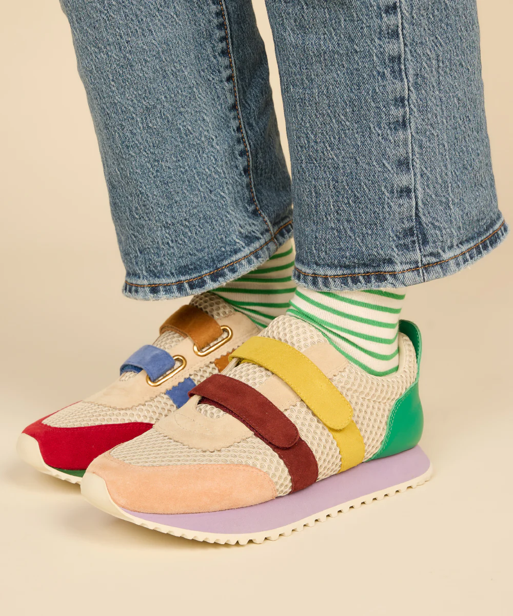 Hansel from Basel striped crew socks wit a roll top.