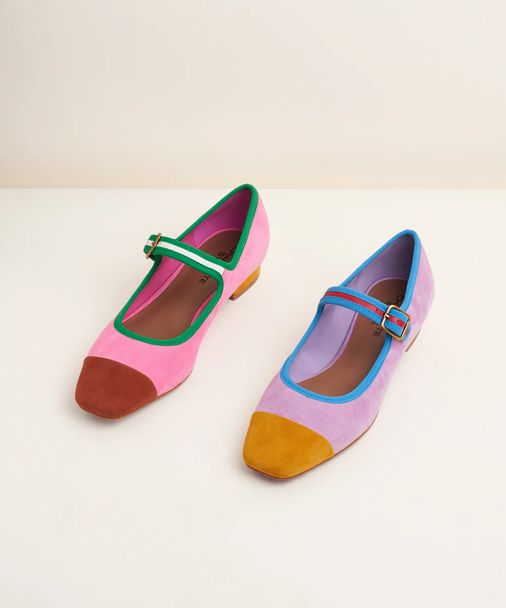 A mismatched ballet flat with contrasting toe caps.